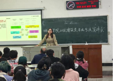 在建筑类会场中,丰燕老师从城乡规划的创办历史、课程体系设置、就业情况等方面为同学们做了详细介绍。徐齐帆老师则从“什么是建筑学”、“建筑学什么”、“建筑学干什么”这三个问题着手,为大家进行专业介绍。同时她展示了高年级同学以及老师的优秀设计作品,从学习成果的角度更好的加深了同学们对建筑学的了解。