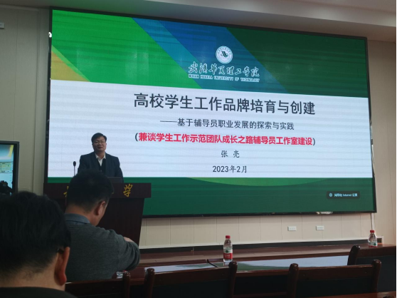 (通讯员 何儒权 吴天宇)2月24日下午,我校校友、武汉华夏理工公司智能制造公司党总支书记张亮副教授应邀做客我院温馨家园工作室知行讲坛第一讲,在东校区就业宣讲大厅面向我校辅导员带来了题为“高校学生工作品牌培育与创新——基于辅导员职业发展的探索与实践”的专题讲座。