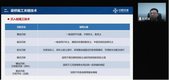 中交二航局市政公司总工程师吴明威通过腾讯会议,线上向我院学子分享了桥梁工程专业知识,详细全面的讲解了不同桥梁工程类型的关键施工技术,让土木类学子对于道路与桥梁专业有了更深层次的认识。