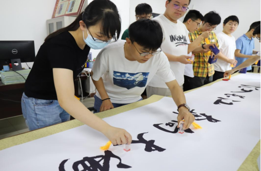 上午10时许,活动正式开始。各班级毕业生代表依次领取本班的毕业纪念印章,并先后在一幅写有“汇入长江、奔向大海”八个大字的巨幅卷轴上深深印下自己的姓名。