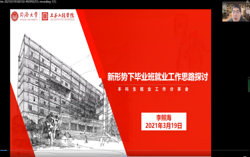 会上,李照海以“新形势下毕业班就业工作思路探讨”为题,阐述了常态化疫情防控、经济放缓下行压力增加以及研究生扩招等形式之新,介绍了同济大学土木工程公司在应对新形势下就业工作挑战方面的创新举措,最终结合我院实际给出了相关建议。针对考研学生扎堆报名校、落榜后也不积极调剂或是选择就业等情况,他讲到要注重一对一的具体引导,通过收集历年考研“二战”上岸数据、以实例强调应届毕业生身份的重要性等,引导学生做多手准备;针对学生就业积极性不高、慢就业缓就业甚至不就业情况,他建议利用朋辈和校友引导,选树优秀典型,通过打造成功就业案例营造积极就业的氛围,形成正面反馈。