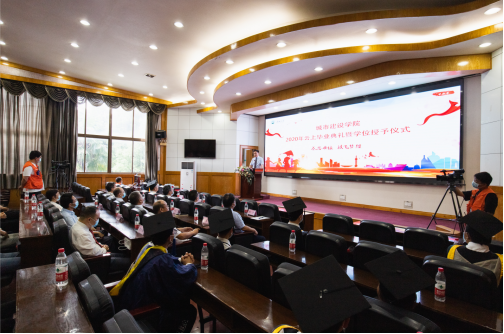 曾磊院长的讲话将毕业典礼暨学位授予仪式推向高潮。“面对疫情大考,75人考入国内优秀大学深造、12人即将赴英国、爱尔兰等地游学、2人将继续攻读博士学位、265人已经顺利签约中建、中铁建、中冶等央企、国企等优秀企业……”曾磊对本届毕业生取得的辉煌成绩如数家珍,并向全体毕业生提出了学会“感恩、自信、思考、协作”的四点期望。“以感恩之心对他人、以宽阔胸怀入社会”;“自信的人生就会全力以赴、不断进步,从而更加自信、良性循环”;“提出一个问题比解决一个问题更重要,学会独立思考、矢志终身学习”;“独行快、众行远,团队协作、一往无前”……这些讲话“金句”给全体毕业生留下了深刻的印象,是讲给毕业生的“最后一课”。