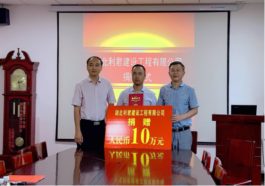 “奉献爱心、捐资助学”,7月2日下午,湖北利君建设工程有限公司捐赠仪式在城建公司9教208会议室举行。公司总经理向丽军、公司教育发展基金会副理事长兼秘书长孙启军、城建公司院长杜国锋共同签署了捐赠协议。城建公司副院长张继承、校友工作办公室宣传部长何曼参加了会议。