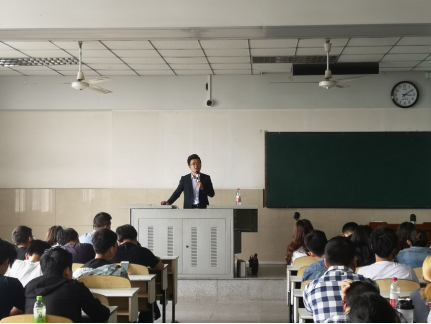 下午三点,讲座正式开始。在盖老师简短的开场白后,谭翔老师上台开始了精彩的演讲。他先是开门见山的道出了讲座的重点与主题,随后按照创新创业大赛的内容做了具体分析,并将大学生参加相关活动的必要性深入浅出的对我们进行了阐述。谭老师风趣幽默的演讲内容与他精心准备的课件相结合,带给我们一场视听盛宴。最后,谭老师用一段短小却富有哲理的话语结束了本次讲座。
