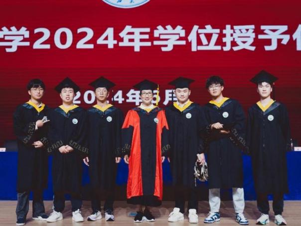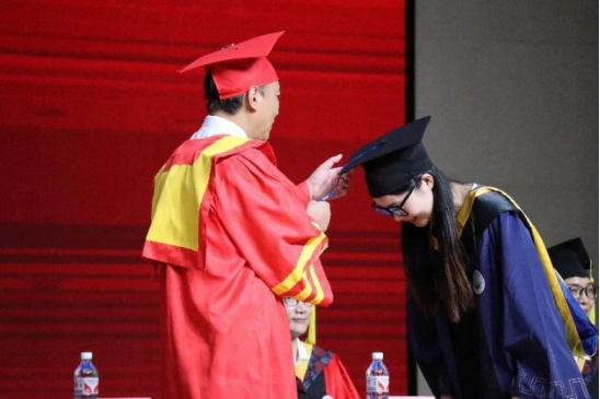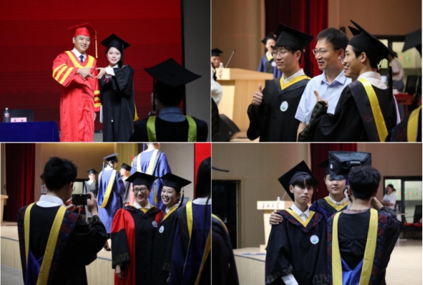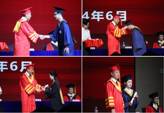 学位授予环节,公司副院长肖桃李教授为毕业生正衣冠,太阳成tyc122cc集团党委副书记、副校长杜国锋教授为2024届毕业生授予学位。鞠躬握手、拨穗正冠、扶正流苏,毕业生们一一与杜书记合影。现场庄重深情的仪式感让大家终身难忘。