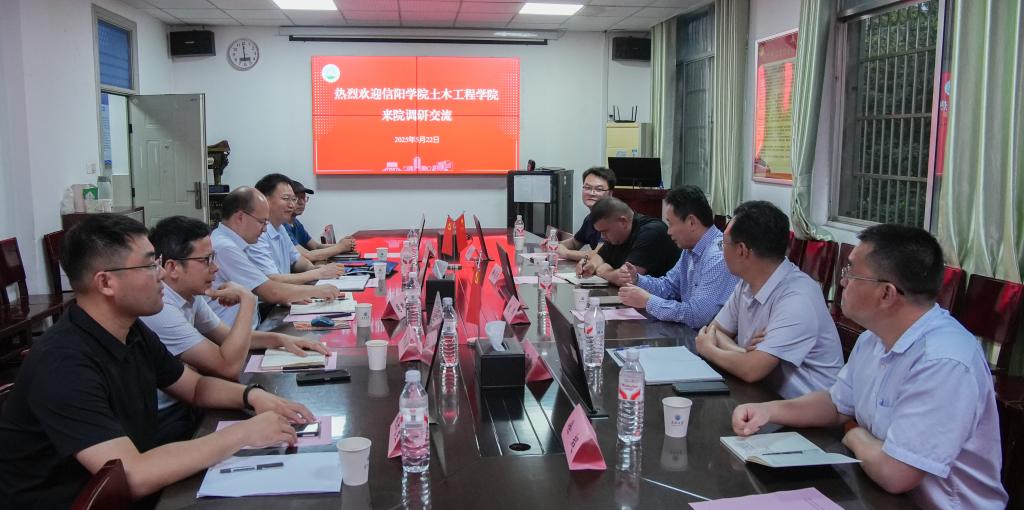 (通讯员 魏民生)5月22日下午,信阳公司土木工程公司党委书记徐远东、院长鲍鹏、副院长杨子泉等一行5人来院进行调研交流。公司党委书记谌姿、院长肖桃李、副院长黄向阳以及教学和学生工作办公室负责人参加座谈。双方围绕人才培养、科学研究、学科建设等主题展开深入交流。会议由院党委书记谌姿主持。