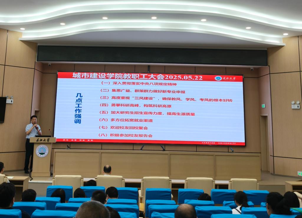 (通讯员 蔡威威)5月22日下午,公司在11教报告厅召开全院教职工大会,通报近期公司相关工作,并安排下一阶段重点任务。公司全体领导和教职工参加会议。会议由院党委书记谌姿主持。