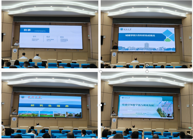 会上,副院长黄向阳梳理了本科教学工作相关内容,对新专业申报、毕业设计和实习实践、中外合作办学项目评估等作了工作安排,并对公司“实验室安全管理”相关文件进行解读;院长助理陈星星重点分析了公司全年科研考核目标任务及目前完成情况,表示高质量论文、重大项目和奖项、发明专利和成果转化是公司发展绩效工作重点;院长助理赵云峰通报了研究生学位论文盲审、招生调剂相关情况,对研究生培养管理办法作了说明,期望毕业季研究生导师多多关注学生心理健康;副书记周洁如就学工相关文件作了详细说明,通报了公司考研就业现状和毕业生离校工作安排,并对班主任工作、校友工作提出具体要求。