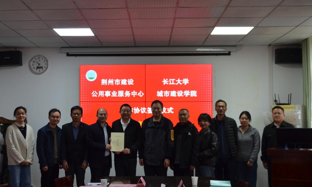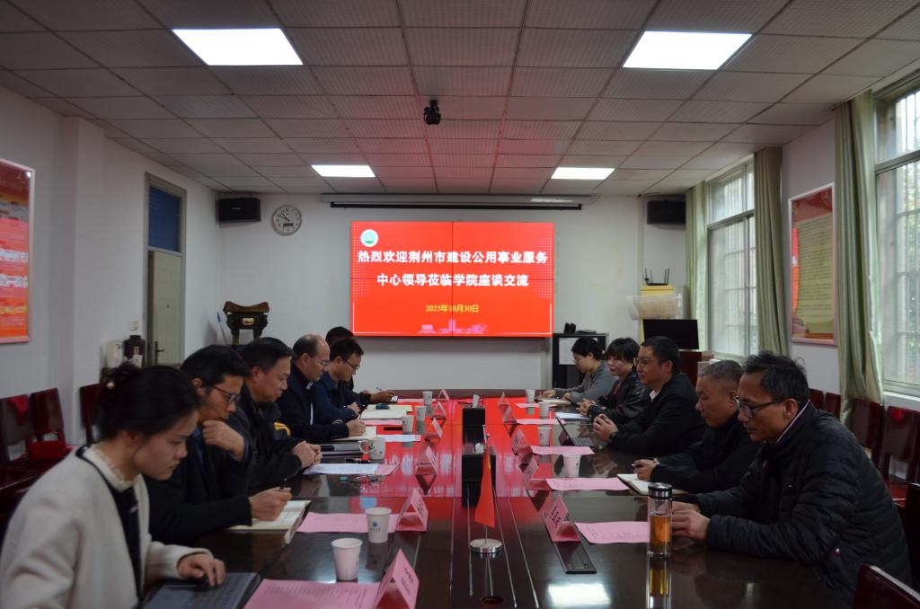(通讯员 刘焱华)10月30日上午,我院与荆州市建设公用事业服务中心校地合作签约仪式在9教208会议室顺利举行。荆州市建设公用事业服务中心副主任、党总支副书记黄映爽一行五人到访,我院领导班子及相关学科教师代表共同见证这一重要时刻。签约仪式由公司党委书记谌姿主持。