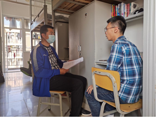 “你为什么想入党?对中国共产党的认识有哪些?”谈话过程中,老党员重点了解了入党申请人基本情况以及进校后的规划、对党的认识、入党动机、思想觉悟和对党的基本知识掌握情况以及对待入党的态度和决心等。同时,对新生的大学适应情况、学习生活情况、以及今后的个人发展规划等做出了详细的了解和指导,在引导学生端正入党动机的同时帮助学生解决好个人实际学习和生活困难。