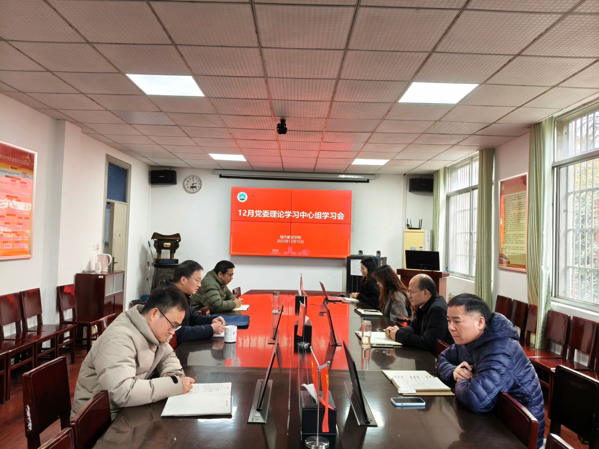 12月15日下午,院党委理论学习中心组在9教208会议室开展理论学习,中心组全体成员参加。会议由院党委书记谌姿主持。