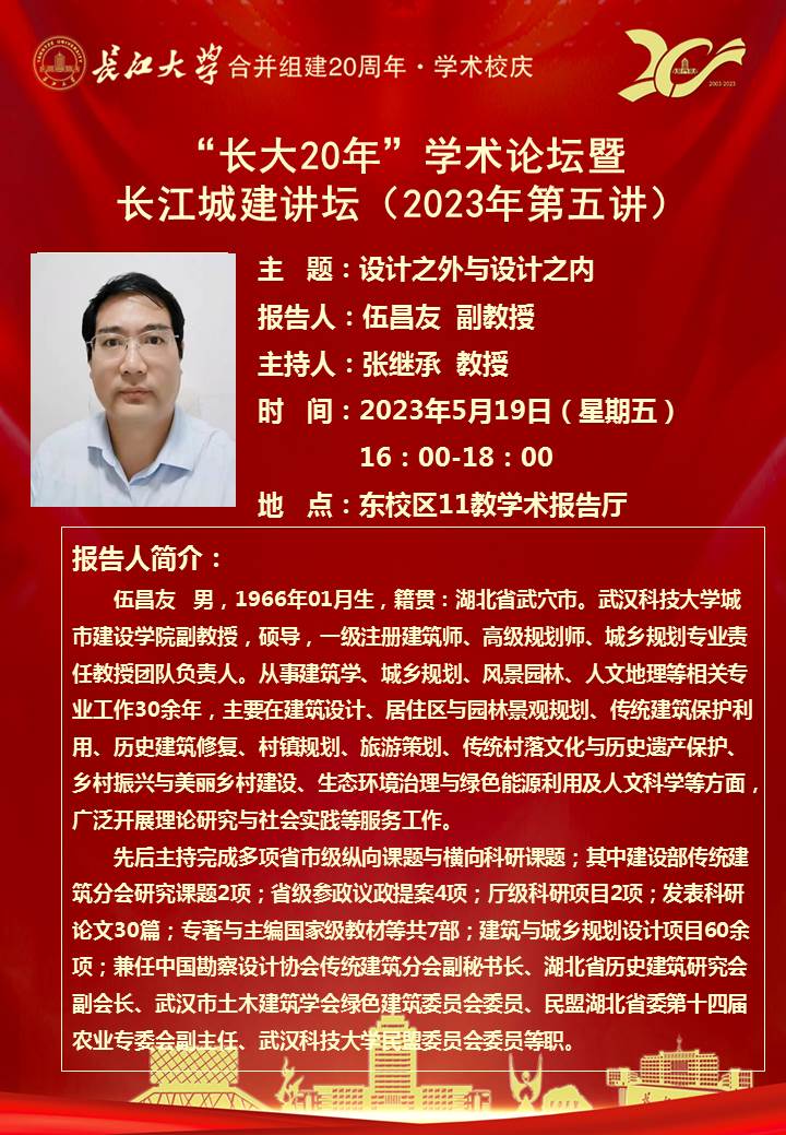 “长大20年”学术论坛暨长江城建讲坛(2023年第五讲):设计之外与设计之内