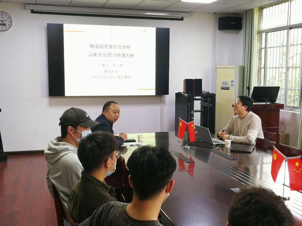 3月15日下午,我院在9教208会议室举行了2022年长江城建讲坛第六讲的学术讲座,苏州大学轨道交通公司副教授刘维博士做客讲坛,并为公司教师作了题为“城市地下隧道掘进地层稳定分析—以矩形顶管法隧道为例”的学术讲座,公司三十几位师生参加了活动。