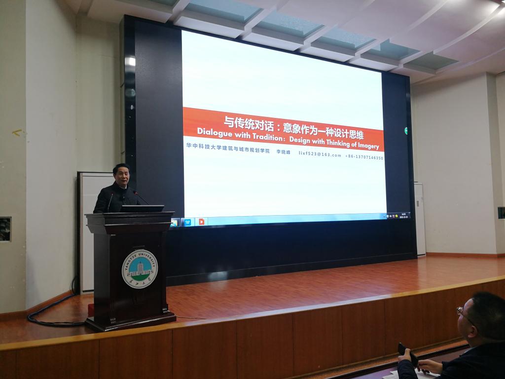 2021年11月13日下午14:30,华中科技大学教授、博导;《新建筑》学刊主编;华中学者特聘教授;受聘为教育部建筑类教指委建筑学分委会委员;全国高校建筑学专业评估委委员;中国建筑学会民居建筑学术委员会副主任;中国建筑学会建筑文化学术委员会副主任李晓峰教授为太阳成tyc122cc集团的师生们带来一场主题为“与传统对话:意象作为一种设计思维”的专题讲座。