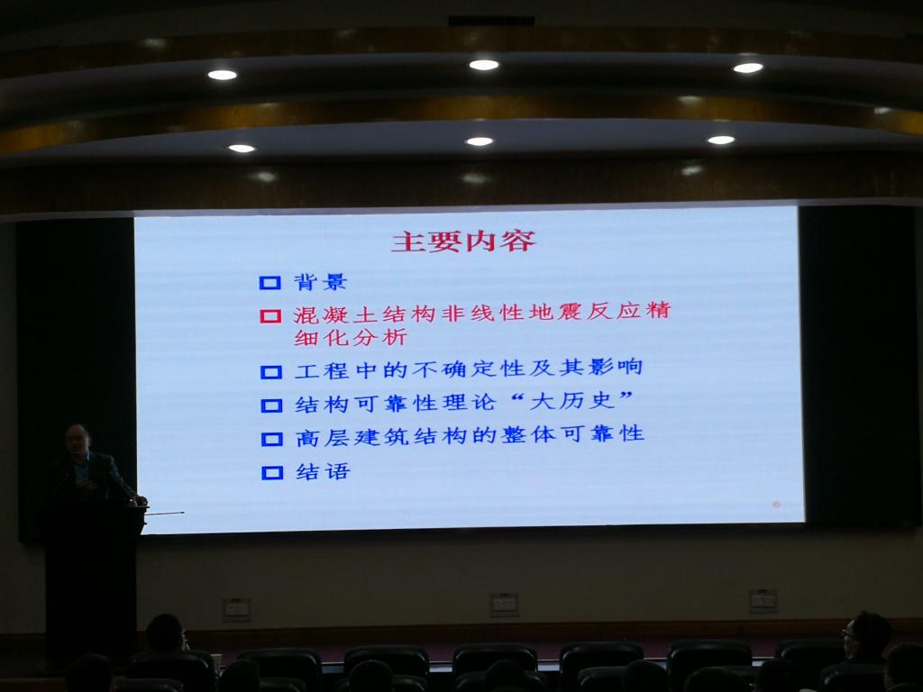 讲座中,陈建兵教授从世界地震带分布讲起,介绍了混凝土结构非线性地震反应精细化分析,工程中的不确定性及其影响,结构可靠性理论“大历史”,高层建筑结构的整体可靠性等内容。讲座中,陈建兵教授运用了大量的实例,进行了深入浅出,极具感染力的讲解,并在提问环节与师生进行了互动交流,师生们受益颇丰。
