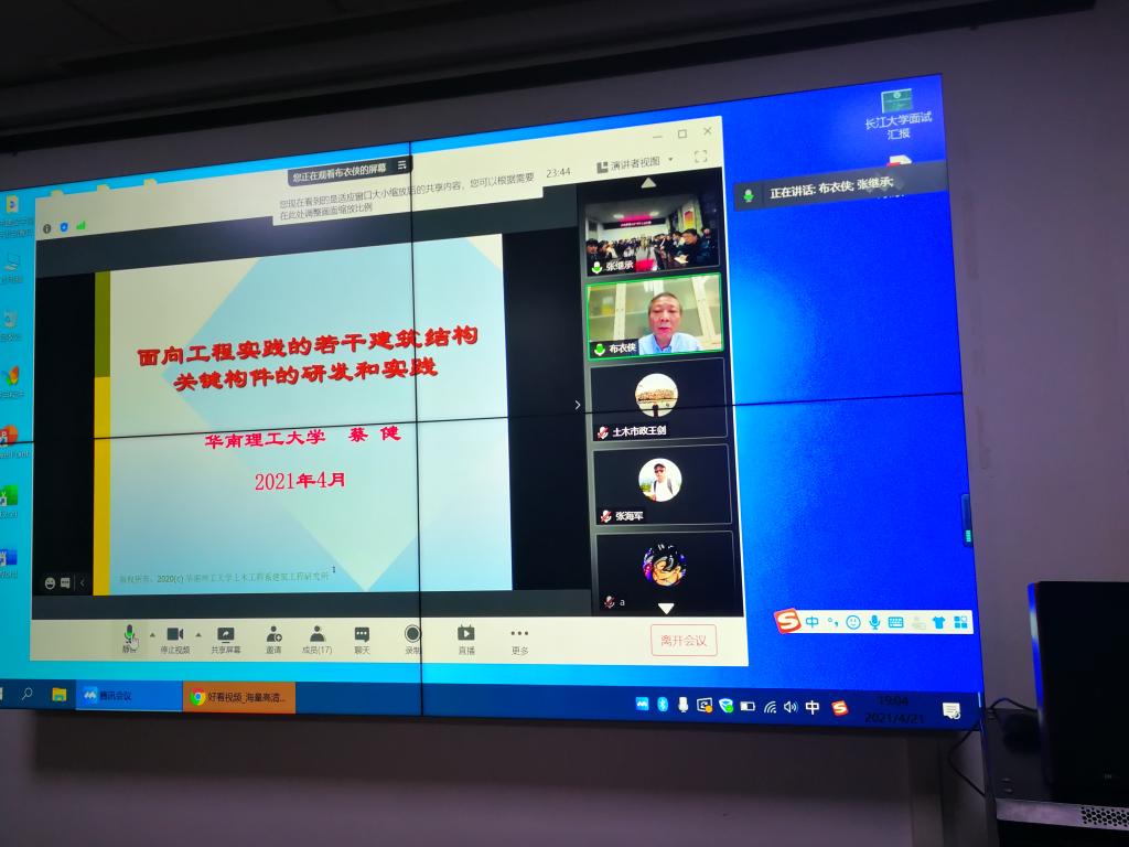 2021年4月21 日晚上19:00,华南理工大学建筑公司土木工程系教授、博士生导师蔡健老师为太阳成tyc122cc集团的师生们带来一场主题为“面向工程实践的若干建筑结构关键构件的研发和应用”的专题讲座。