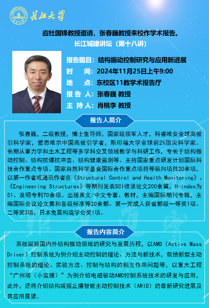 长江城建讲坛2024年第十八讲:结构振动控制研究与应用新进展