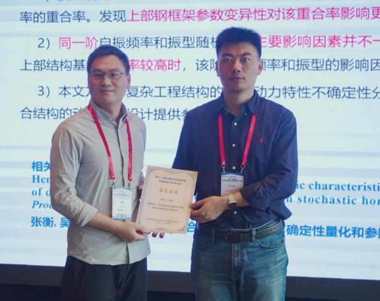我院张衡副教授受邀参加此次盛会,并在分会场作题为“竖向混合结构自振特性不确定性量化和参数全局灵敏度分析”的学术报告。报告内容基于同伦随机有限元法对竖向混合结构的基本动力特性开展参数的全局灵敏度分析,实现了构件层次的结构自振特性影响因素的重要性排序。报告内容得到与会专家的充分肯定。