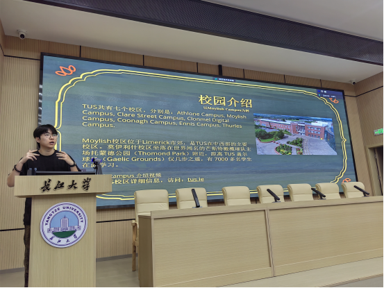 20级土木国际学生陈鑫于2023年9月赴爱尔兰香农理工大学交流访问,现已拿到伦敦大学公司(UCL)的研究生offer。陈鑫现场向学弟学妹们讲述在爱尔兰的学习生活,并在申请国外研究生的准备事项上给予建议和指导。