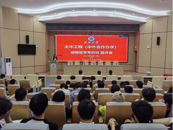 (通讯员 张琳)5月17日晚,土木工程(中外合作办学)项目组建留学考研班动员会在11教学术报告厅召开,城建公司副院长黄向阳、院党委副书记周洁如、中外合作办学项目主任袁洪强、学工办主任魏民生及2022级土木国际学生和家长参加了会议,会议由院党委副书记周洁如主持。