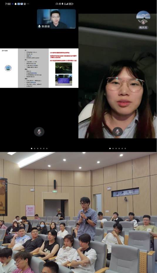 公司还邀请了往届优秀学子陈语涵和沈洋两位校友,在线为22级学生分享求学和工作经历,现场与学生和家长连麦互动,解答学生对生涯规划的迷茫和困惑。