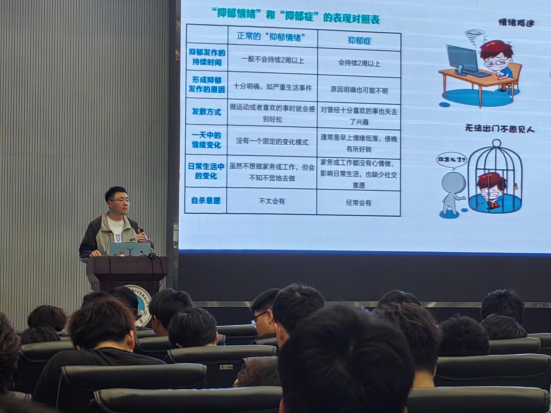魏民生老师指出学生干部在学生危机识别和危机干预中起着重要作用,他列举诸多案例向大家分析了当代大学生常见的心理问题和心理困扰,并着重强调学生干部要掌握基础的心理健康知识,能及时发现并有效参与、处理学生群体中发生的危机事件。魏老师还向同学们介绍了大学生活中常见的心理疾病,并对如何缓解心理问题提出若干建议。随后,他详细讲解了朋辈心理辅导的优势及如何掌握朋辈之间谈心谈话的技巧,并从建立关系、积极关注、理解尊重、同感共情、用心陪伴等五个方面教会同学们如何学会倾听和助人方法。