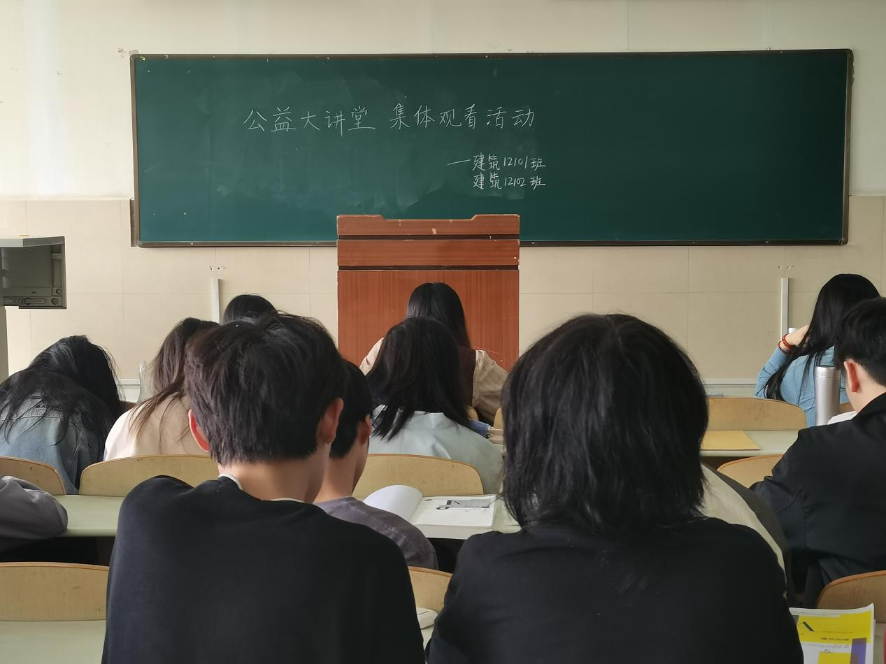 建筑12101班、建筑12102班同学在班长组织下集体观看《青年大学生应如何处理好与同学、老师、朋友之间的关系》公益讲座。祝老师幽默的话语、贴心的建议让同学们对于维持友好关系有了更深刻的理解,增进了师生间的情谊,提高了班级凝聚力。