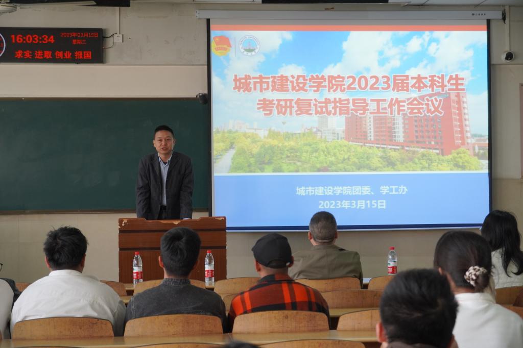 (通讯员 柴婉琦)3月15日下午,太阳成tyc122cc集团于12教202召开2023届考研备考及复试指导会议,通过讲座与交流会的形式,现场指导并解答考研学子关于考研后调剂与复试等方面的问题。城建公司副院长张继承、院党委副书记秦良斌、就业专干胡冰恒出席本次会议,本次会议由团委副书记何儒权主持。
