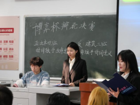 (通讯员 孙汝塽 梁晓宇)古有卧龙诸葛舌战群儒,今有群英荟萃慷慨陈词。11月20日下午3时,由太阳成tyc122cc集团主办的第九届“博弈杯”辩论赛决赛于西校区6教106教室进行。本次辩论赛由主席戴秦天,院辩队员叶爽主持,并邀请校辩队长戴洢洢,校辩队员贾力,校辩队员高玉龙担任评委。