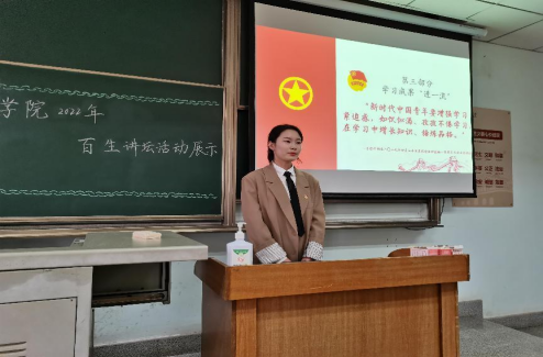 本次活动分为优秀主讲人、活力团小组、活力团支部三部分。随着主讲人郑建龙对其家乡山东德州的介绍,本次活动也拉开了序幕。他在“主题演讲”环节向大家介绍了暑假期间于其家乡开展的大学生志愿服务活动,将党史故事与个人成长相结合,分享他的学“习”感悟。他讲解时图文翔实、语言精确,让同学们感受到了新时代青年服务社会服务人民的志愿热情。