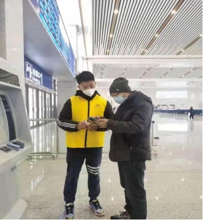 接着,我来到了车站入口处,负责提醒乘客佩戴口罩并检查健康码,为车站防疫工作贡献自己的力量。不同于车站内部的岗位,它不需要太多灵活性,更多注重细心和耐心。我积极维护好志愿者形象,姿态挺拔,声音洪亮,手势到位。乘客们会心的微笑给了我极大的动力,让我认真坚守好看似枯燥的岗位,一次又一次地提示着“请戴好口罩并出示健康码”,向乘客展现着最佳的精神风貌,为他们提供更好的乘车体验。