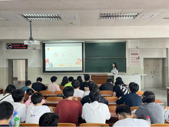 宣讲会伊始,公司征兵专干刘安琪老师从国防建设与国家安全、青年大学生使命担当与成长成才的角度,对2022年大学生征兵工作进行了动员,号召我院青年,以国家需要为己任,积极响应祖国号召,以实际行动投身军营、报效祖国。同时,详细解读了当前大学生征兵入伍的多项鼓励政策,包括安置政策、学业优待政策、经济补助政策等。