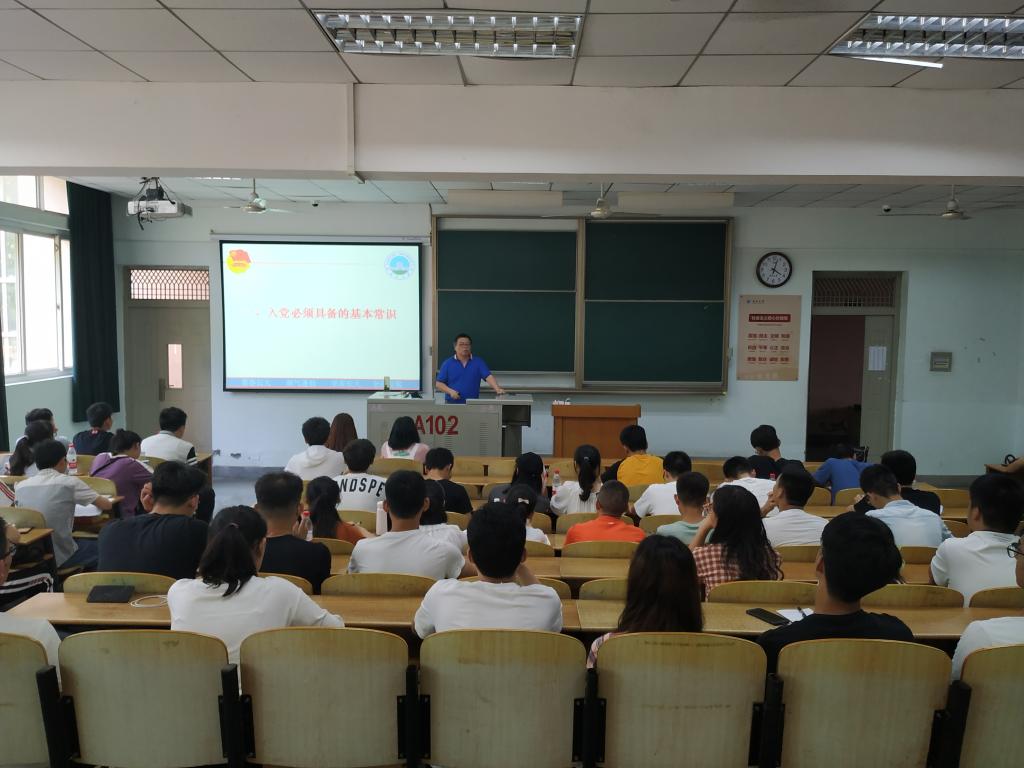 张老师为同学们讲了入党必须具备的基本常识和青年共产党的使命两方面的内容,用生动形象的例子向同学们展示了中国共产党顺应时代发展的历史潮流。他提出现在提交入党申请书的人数众多,故每个入党积极的分子应严格执行入党组织程序。他强调同学们应具有“四个意识”和“四个自信”,努力践行社会主义核心价值观,为实现中国梦而奋斗。
