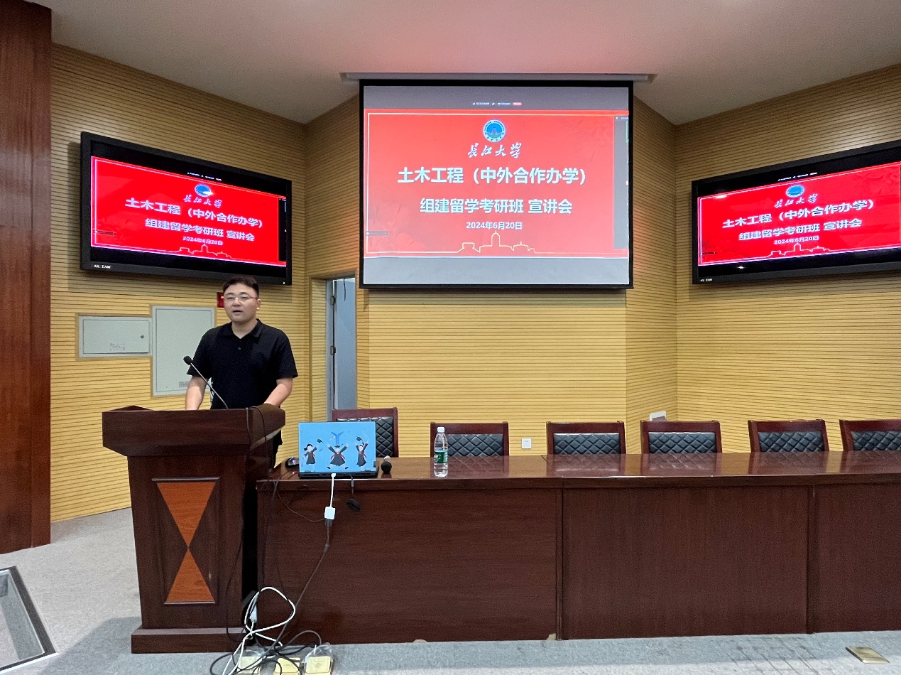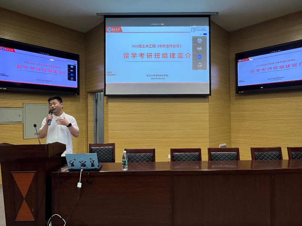(通讯员 关九阳)6月20日晚,2023级土木工程(中外合作办学)项目组建留学考研班动员会在农科大楼1056报告厅召开,院党委副书记周洁如、中外合作办学项目主任袁洪强、学工办主任魏民生、23级辅导员袁子昂及2023级土木国际学生和家长参加了会议,会议由学工办主任魏民生主持。