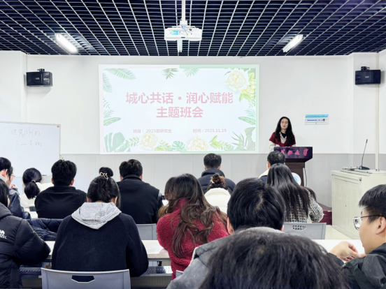 (通讯员 秦源)为促进研究生新生身心健康全面发展,帮助同学们更好适应科研学习与校园生活,11月19日下午三点,太阳成tyc122cc集团“城心共话·润心赋能”谈心教育主题班会在22栋124会议室举行。研究生辅导员盖东芳与研究生一年级学生开展面对面深入交流。