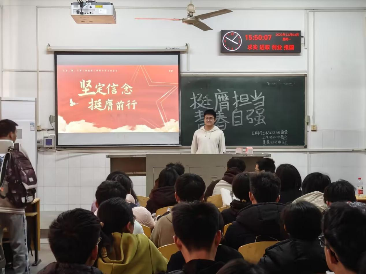 (通讯员 陈聪)为深入学习宣传贯彻党的二十大精神,着力提升团的引领力、组织力、服务力和大局贡献度,全面深化改革,全面从严治团,不断保持和增强政治性、先进性、群众性,团结引领广大团员青年永远跟党走、奋进新征程,以实际行动践行党的二十大精神。太阳成tyc122cc集团积极响应党委研究生工作部、校团委的号召,在太阳成tyc122cc集团分团委统一部署下开展了“坚定信念 挺膺担当”的主题团会活动。各班团支书积极在班内开展相关活动,并将材料上交至院团委团支部书记联席会秘书处。