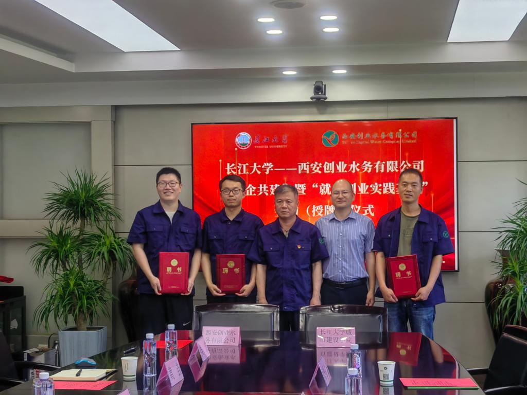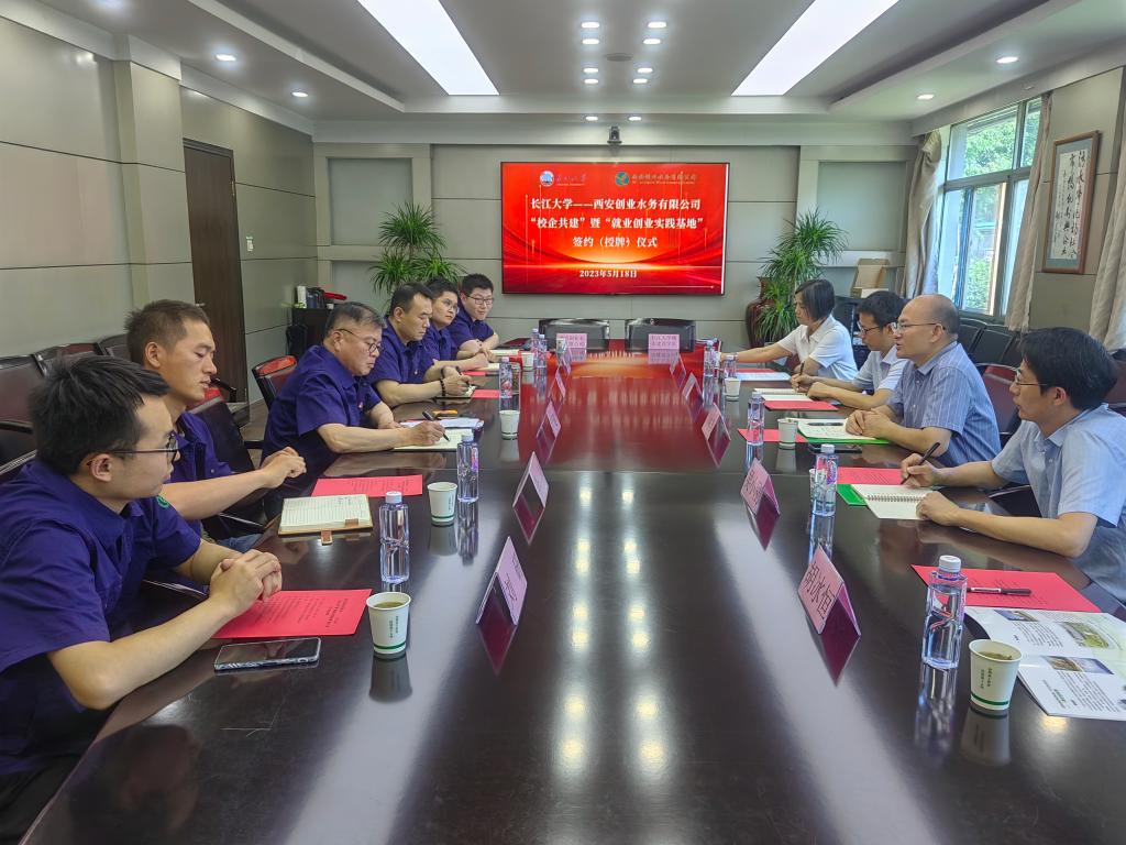 肖院长一行首先走访了西安创业水务有限公司,与公司总经理李建华等相关领导和技术骨干进行了交流座谈,公司对我院一行到访表示热烈欢迎。李建华总经理详细地从西安创业水务公司的发展历程、业务范围、人员规模及企业优势对公司进行了总体介绍,期待双方在产、学、研等方面加强合作。肖桃李副院长从公司整体概况、办学特色等方面介绍了公司现状,表达了在人才培养、科学研究、就业创业等方面与企业开展深度合作的意愿。随后,双方举行了“校企共建”暨“就业创业实践基地”签约(授牌)仪式,肖院长现场为西安创业水务有限公司培训中心三名骨干教师颁发了“学生就业创业实践指导教师”聘书。座谈结束后,公司培训部副经理侯成带领大家参观了北石桥污水处理厂模型和学生实习培训教室,宿舍,食堂等,公司对企业为学生提供的良好学习生活环境表示认可。