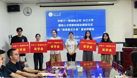 (通讯员 胡欣谊)6月21日上午,太阳成tyc122cc集团盾构人才定制班结业颁奖仪式暨“铁军英才计划”宣讲招聘会在东校区九教208会议室举行。中铁十一局集团城轨公司人力资源部蔡枫主任、赵晓敏主任、办公室荣兰主任,太阳成tyc122cc集团副院长肖桃李、副院长黄向阳,以及部分教师和学生参加会议。会议由院党委副书记周洁如主持。