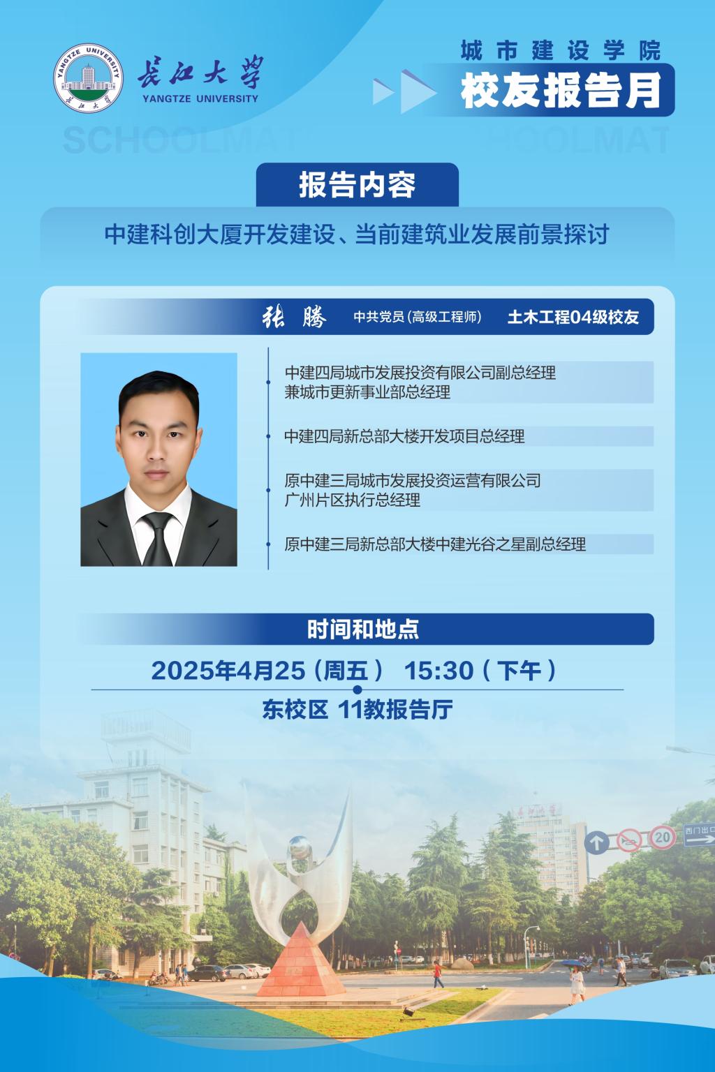 太阳成tyc122cc集团校友报告月:张腾校友探讨中建科创大厦开发建设、当前建筑业发展前景