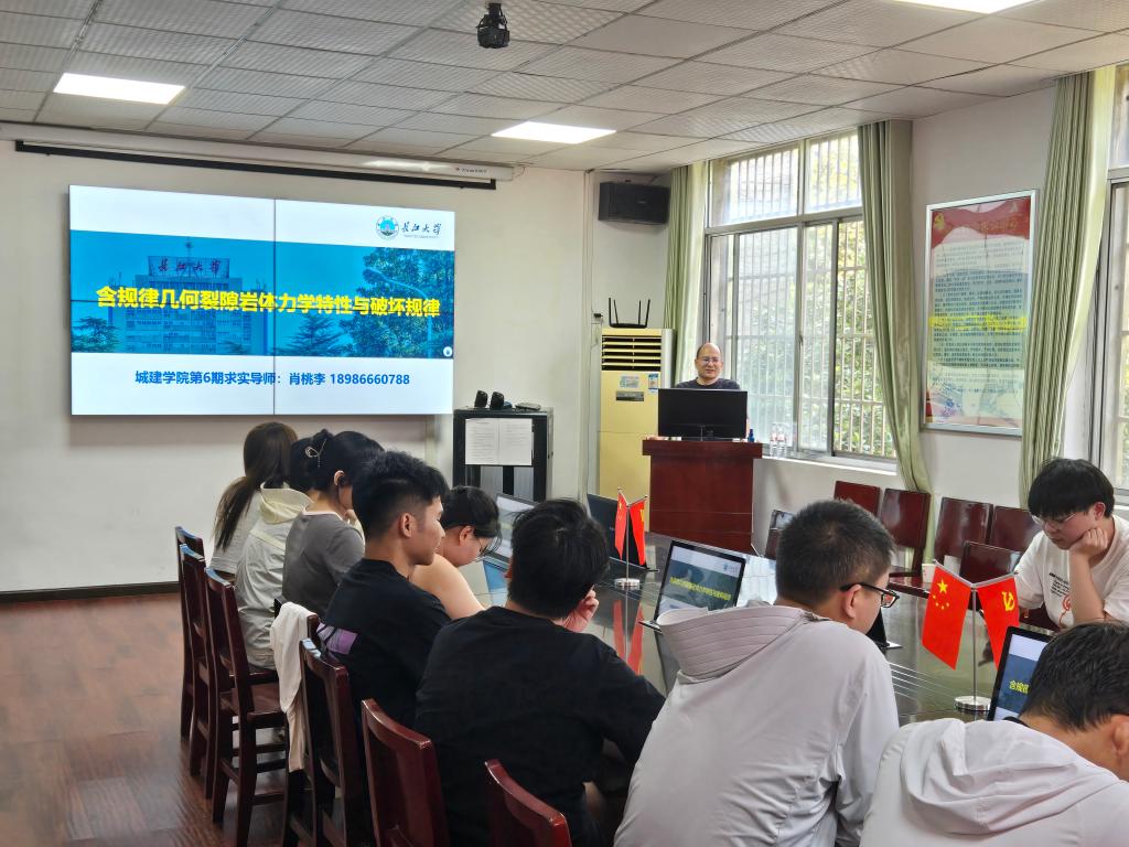 硕士生导师肖桃李教授的报告题目是“含规则几何裂隙岩石起裂、扩展及破坏机理的试验研究”。本报告聚焦含规则几何裂隙岩石起裂、扩展及破坏机理的试验研究,对岩体工程稳定性评估及灾害防治具有重要意义。开篇详述研究背景,强调岩石内部裂隙广泛存在,其起裂、扩展与破坏过程显著影响岩体强度与稳定性,而传统研究在复杂裂隙形态及多因素耦合作用方面存在不足,凸显本次研究的必要性。