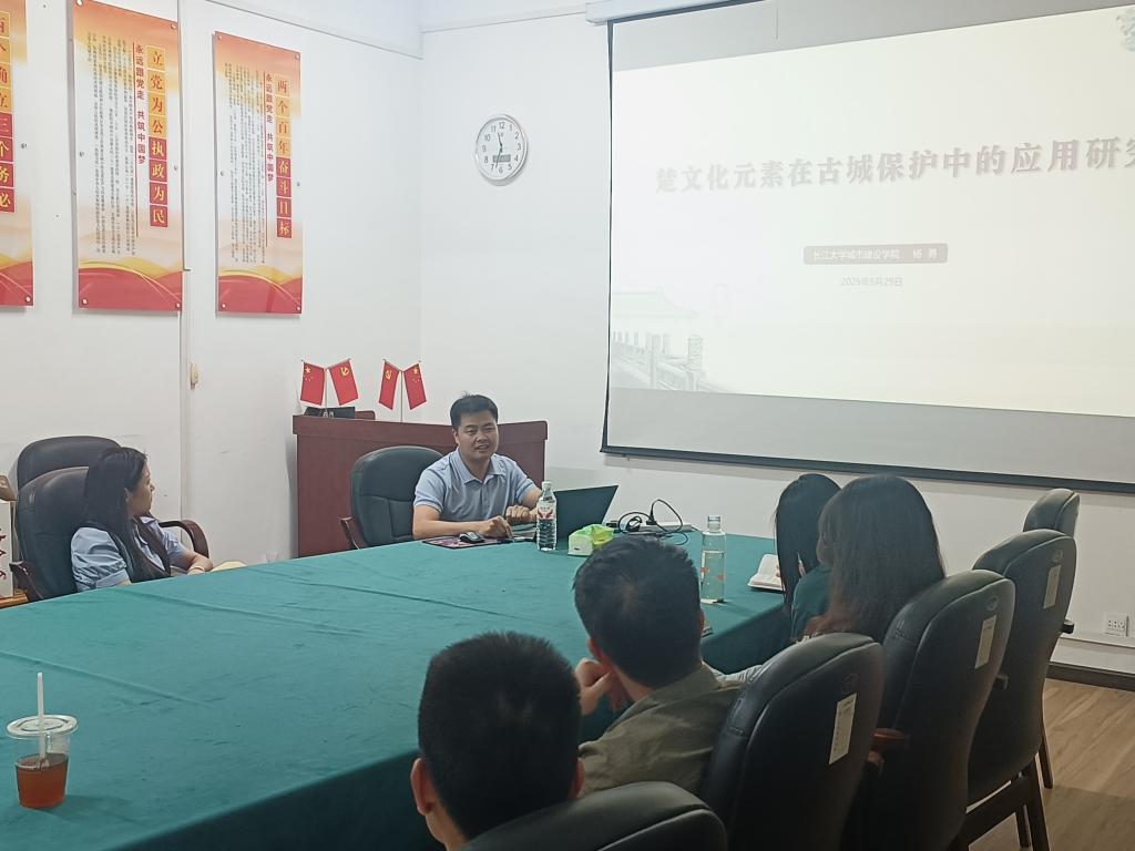 硕士生导师杨勇副教授作题为“楚文化元素在古城保护中的应用研究”的报告分享。楚文化是中华文化的重要组成部分,在古城保护与城市更新中发挥重大作用。本报告分别从楚文化的历史渊源、时空分布、六大支柱、五大精神等方面探讨楚文化元素在古城保护与城市更新的应用。通过楚哲学、楚文学、楚绘画、楚雕塑、楚乐舞、楚民俗等元素在古城保护更新中的文化遗产保护、历史文化传承、文旅融合及现代技术结合等多维度实践,探索楚文化元素在遗迹修复、活态传承、场景活化等方面的路径。